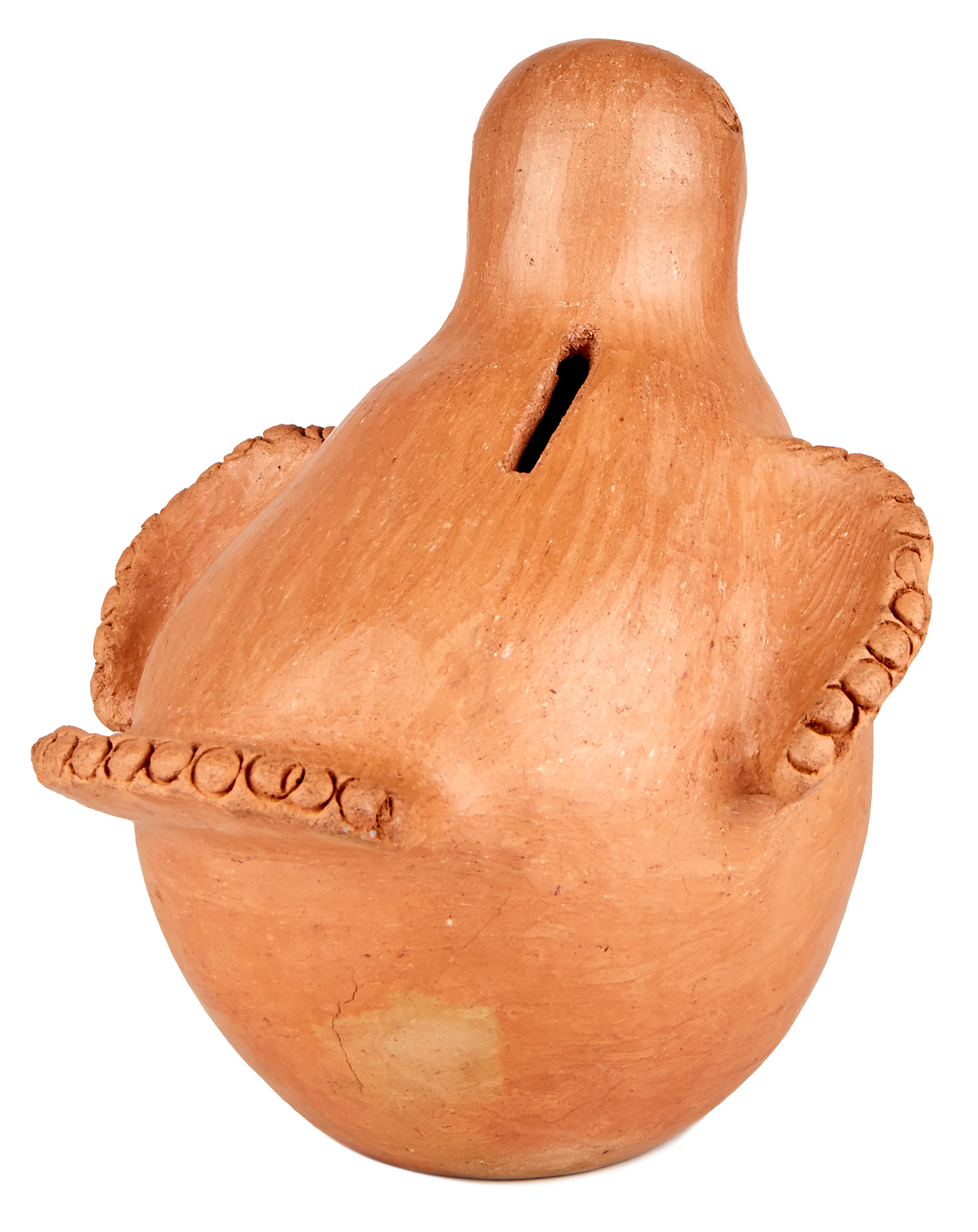 Hand-sculpted piggy bank made from barro mixe in the shape of a bird by Florencia Diaz of Tlacolula de Matamores, Oaxaca, Mexico.